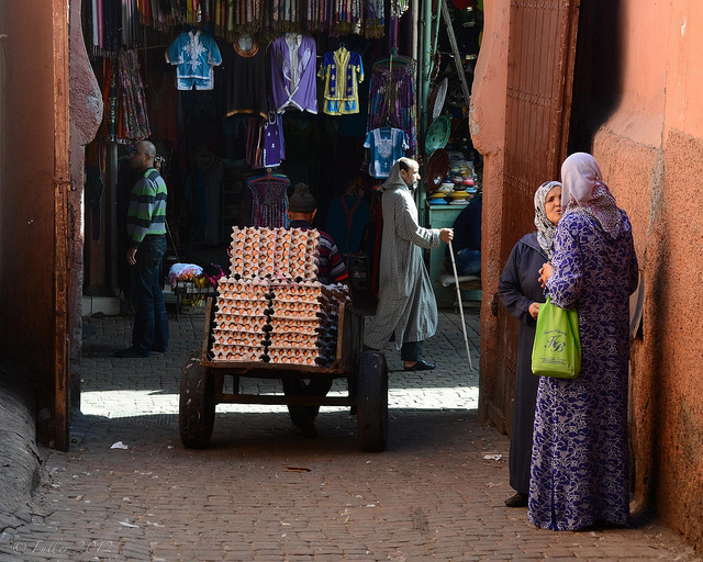 When I arrived in Marrakech, none of the taxi drivers knew where my riad (a traditional Moroccan home now commonly used for guesthouses) was, so I hiked off looking for it myself.  When I crossed the city walls into the medina (old city), I encountered a labyrinth of narrow, winding streets with high walls, no signage, poor lighting, hostile children, dead-ends, and maniacally driven motorbikes. I have patience, and a good sense of direction, but this was a whole other level!
