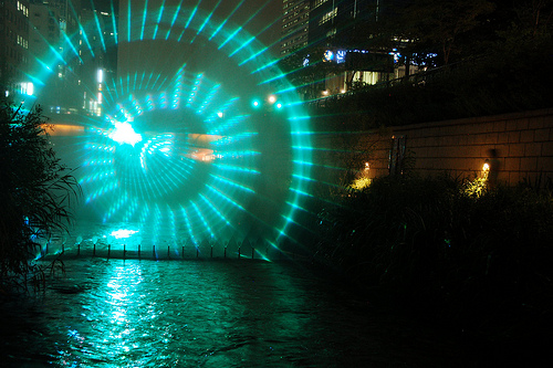 In Seoul there exists a tranquil babbling stream slicing across the heart of the city, sunken from street level. It has gentle cascades, stepping stones, and wooden arched bridges. At night on a wall they project automated evolving digital flowers, and every hour there’s a mesmerising laser show to music, projected into a cloud of fog. This place is called Chung-gye-cheon. Many people come here to relax, have a date, play music, or nap. The most amazing thing about the place, and what serves as a great example of the progressive attitude of Koreans, is that for the past 50 years up to 2005 this stream was covered with concrete and topped with a highway. Imagine any of our cities ripping out a highway to build a public cultural space!